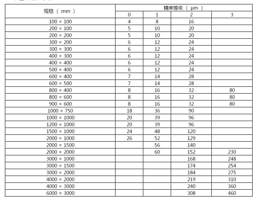 圓形平臺精度:按標準計量檢定規程執行,分別為0,1,2,3級四個級別。